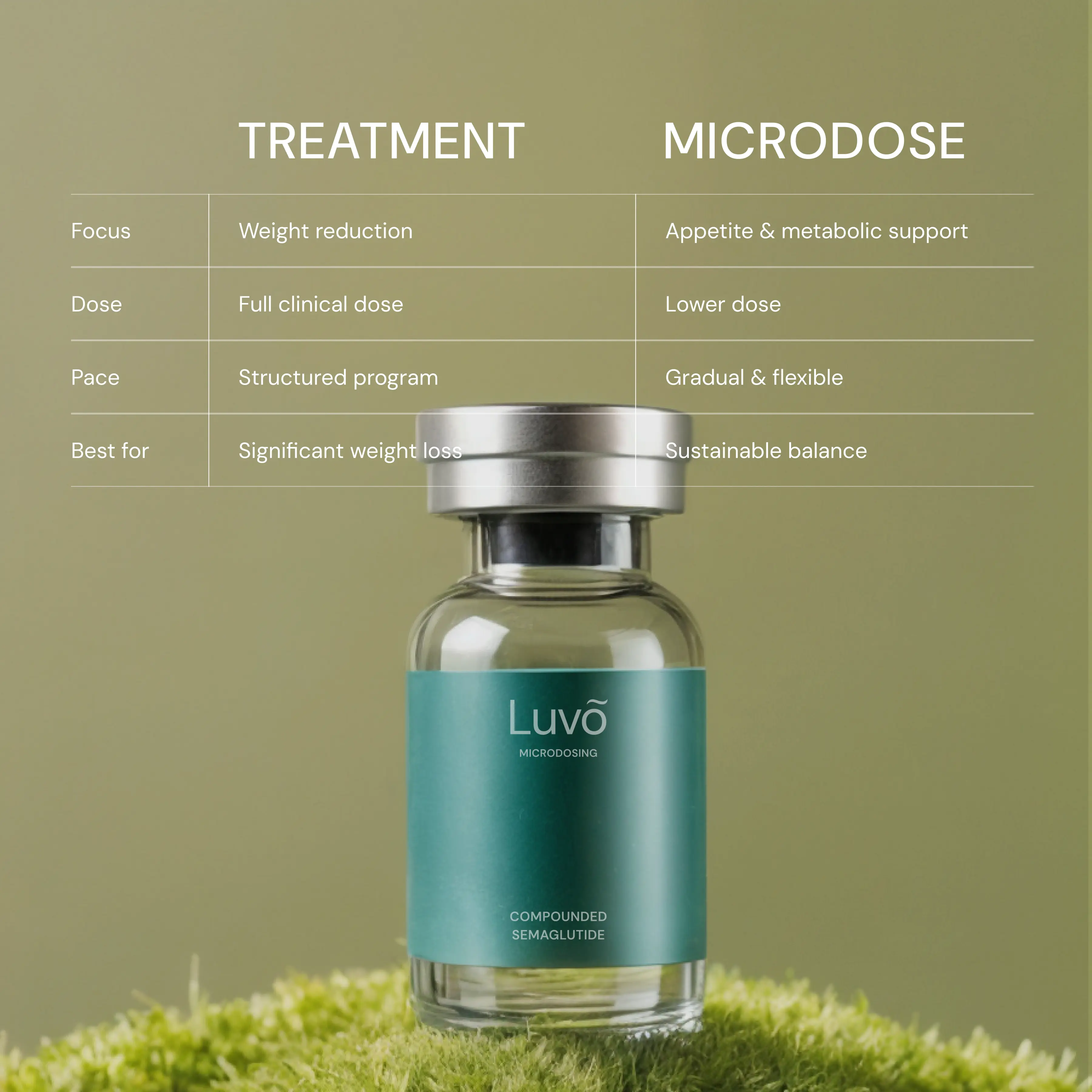 Compounded Semaglutide is offered as part of a clinician-guided microdosing plan when appropriate. Your clinician will explain why it fits your goals and medical history.