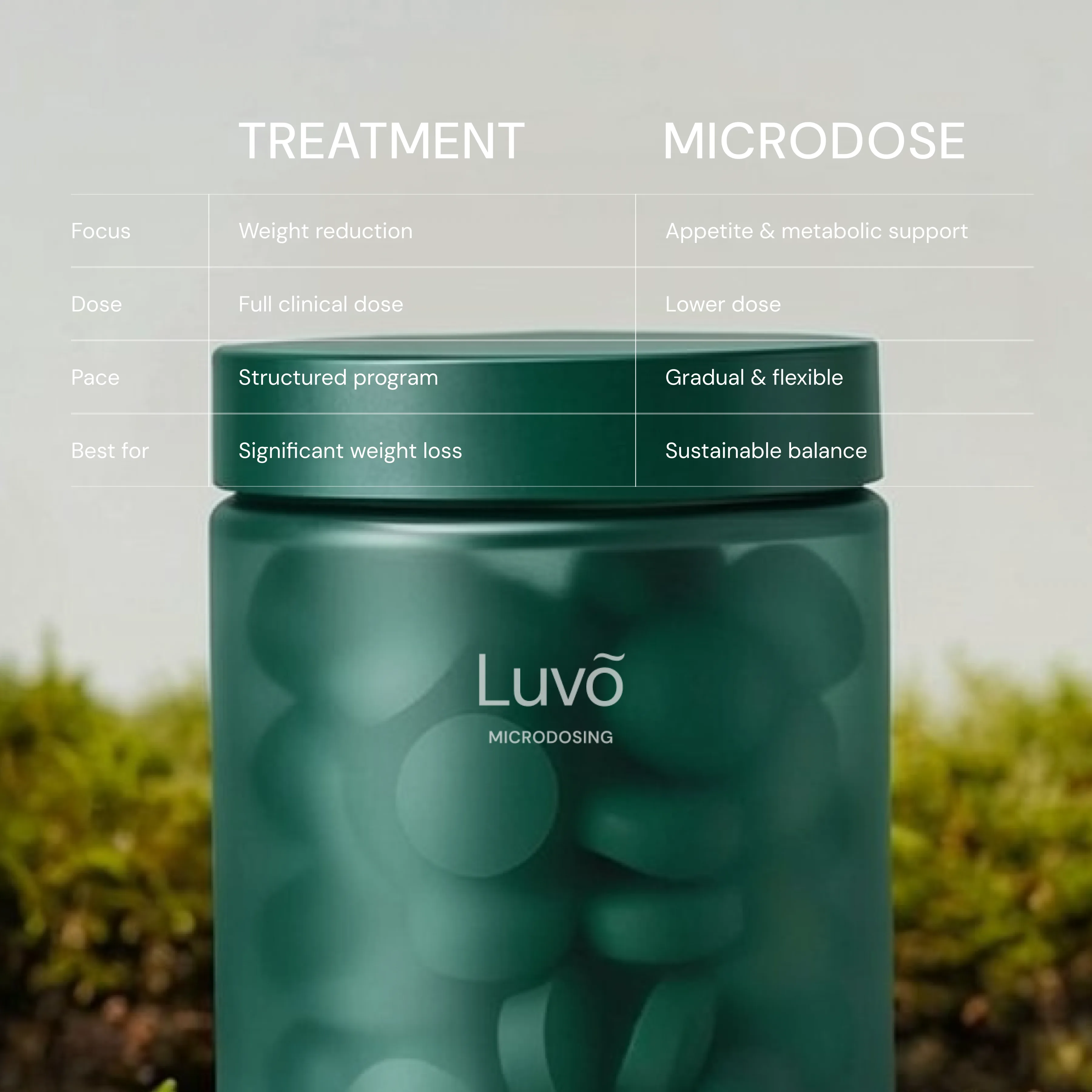 Microdosing refers to a lower-dose, personalized strategy that aims to maintain meaningful appetite and metabolic support while optimizing tolerability. Your clinician determines the appropriate starting dose and makes adjustments over time.