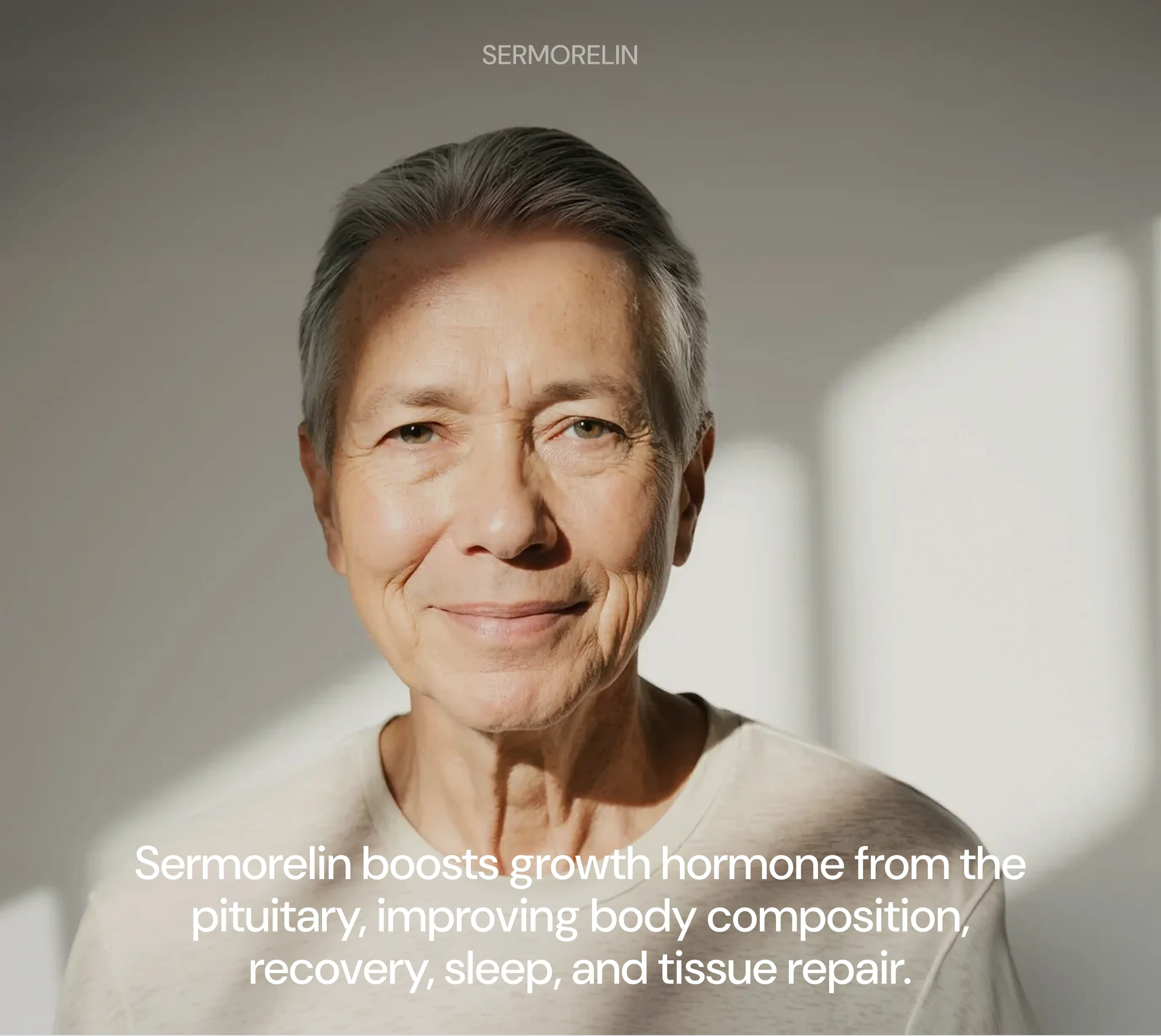 Sermorelin is a synthetic peptide that mimics part of the body’s natural GHRH. It signals the pituitary gland to release growth hormone in the body’s own pulses, which may support recovery and sleep when used under medical supervision.